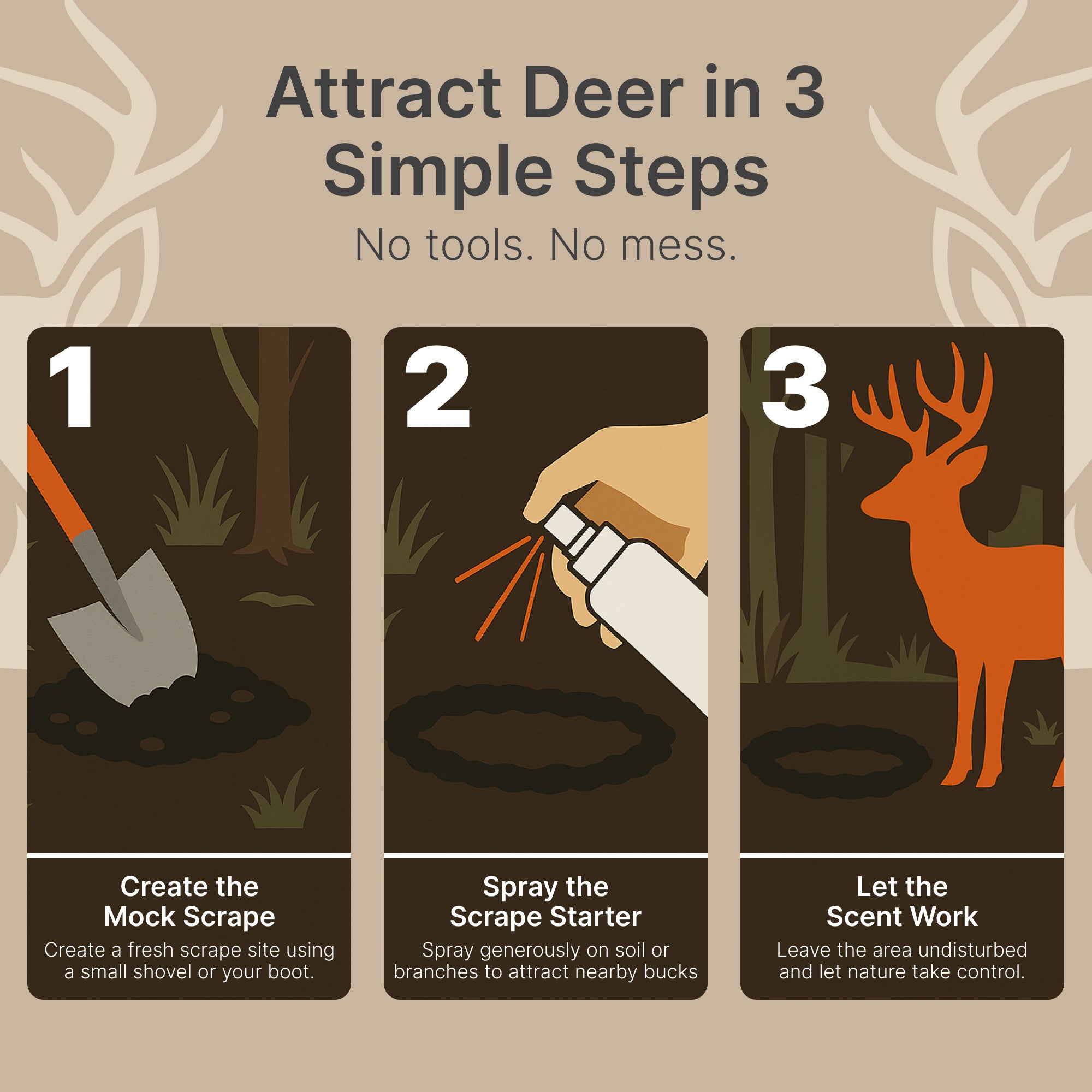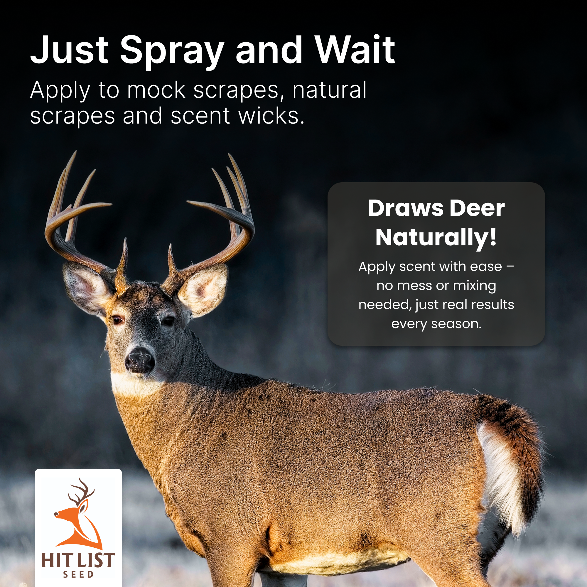 • Simple 3-Step Process – Just clear a scrape, spray generously, and let the natural scent take over—no tools or mess required.